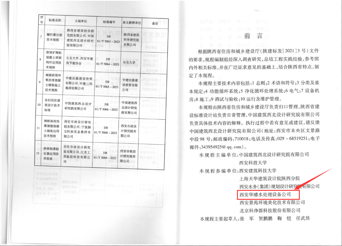 2023年8月30日起,陜西省《景觀水體循環(huán)及處理技術(shù)規(guī)程》DB61/T 5058-2023工程建設(shè)標(biāo)準(zhǔn)正式發(fā)布實(shí)施,本規(guī)程是根據(jù)陜西省住房和城鄉(xiāng)建設(shè)廳文件要求,規(guī)程編制經(jīng)過深入調(diào)查研究,總結(jié)工程實(shí)踐經(jīng)驗(yàn),結(jié)合陜西省特點(diǎn)制定,由中國建筑西北設(shè)計(jì)研究院有限公司,西安科技大學(xué)主編;西安建筑科技大學(xué)、上海天華建筑設(shè)計(jì)院陜西分院、西安水務(wù)(集團(tuán))規(guī)劃設(shè)計(jì)研究院有限公司、西安華浦水處理設(shè)備有限公司、西安景苑環(huán)境美化技術(shù)有限公司,北京科凈源科技股份有限公司參編。