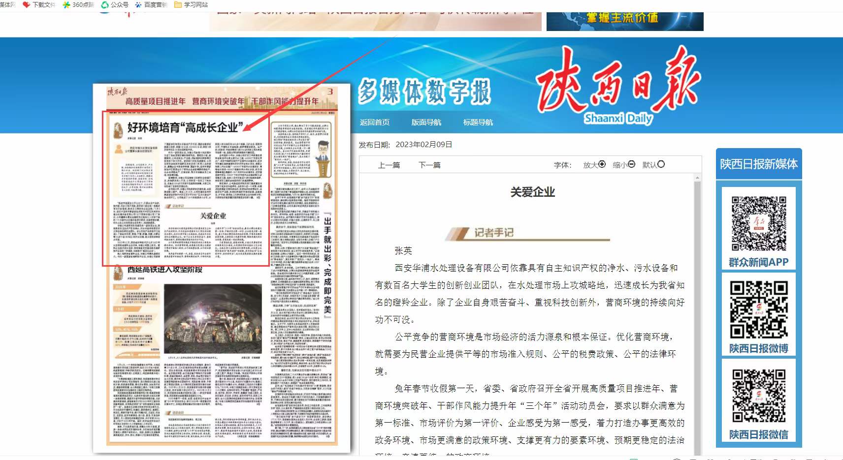在2023年2月9日陜西日報第3版中:好環(huán)境培育“高成長企業(yè)”介紹了我公司特殊時期
