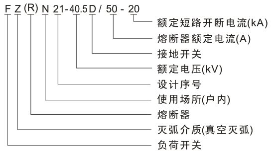 FZ(R)N21-40.5D/50-20型真空隔離負荷開關(-熔斷器組合電器)用于交流50Hz,額定電壓40.5kV的網絡中,作為開斷負荷電流、過載電流和短路電流之用。尤其適用于要求無油化、免維修及頻繁操作的場所。